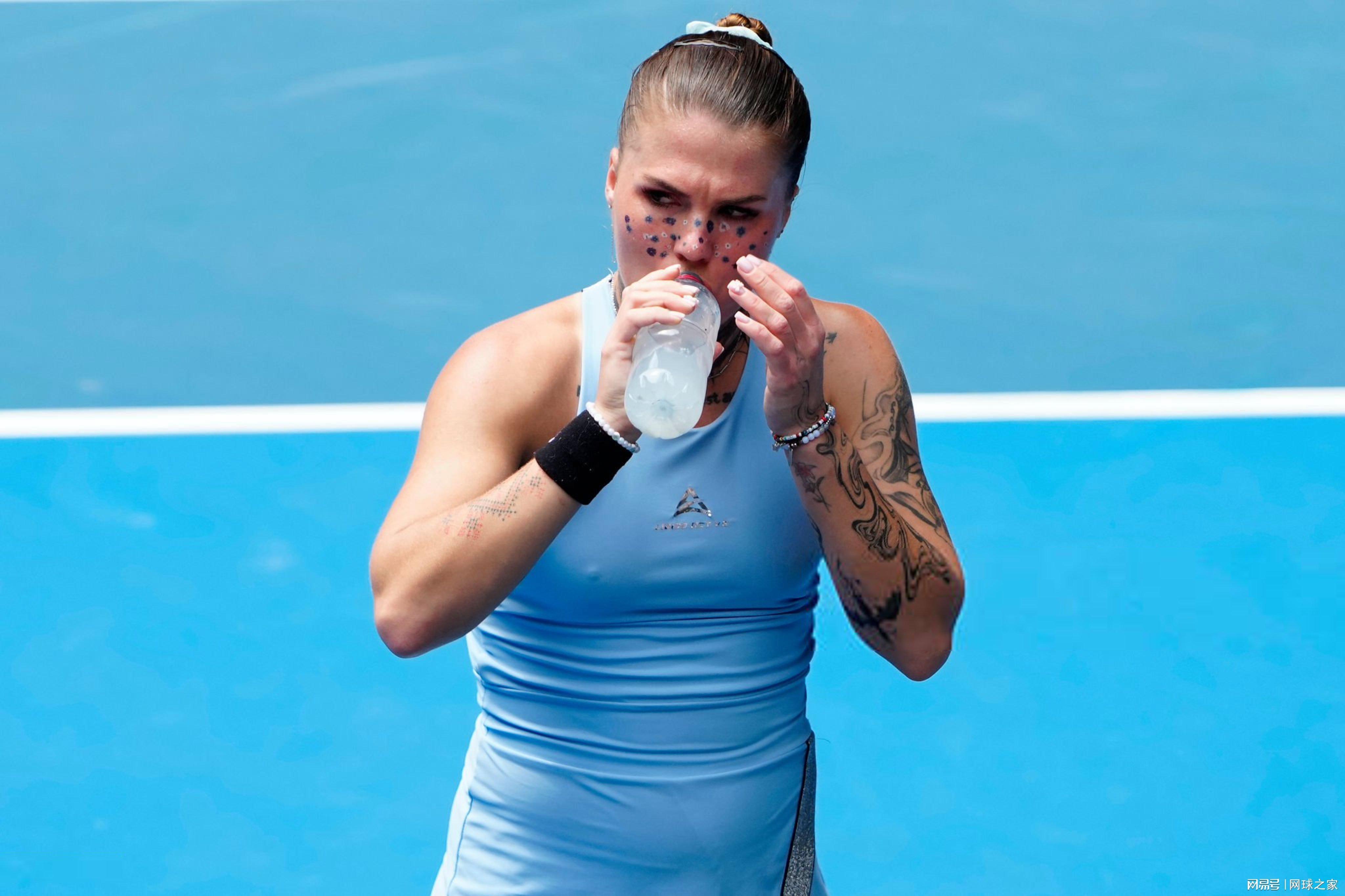 “快乐大满贯”,也不一定总是轻松快乐的。澳网女单首轮,一位脸上带有刺青的陌生面孔出现在了罗德拉沃尔球场,她是来自乌克兰的奥列克桑德拉·奥利尼科娃。