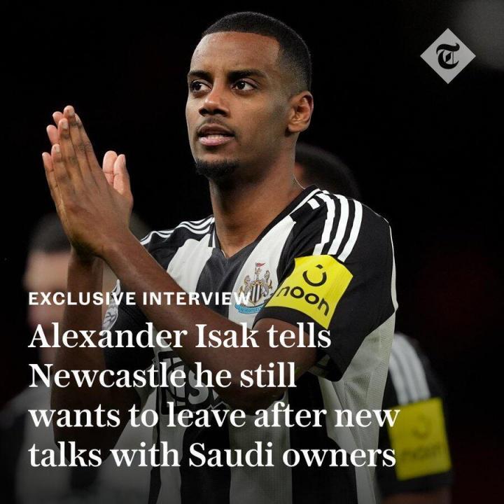 直播吧08月26日讯 电讯报独家:伊萨克仍想离队&重申希望去利物浦,将继续罢训